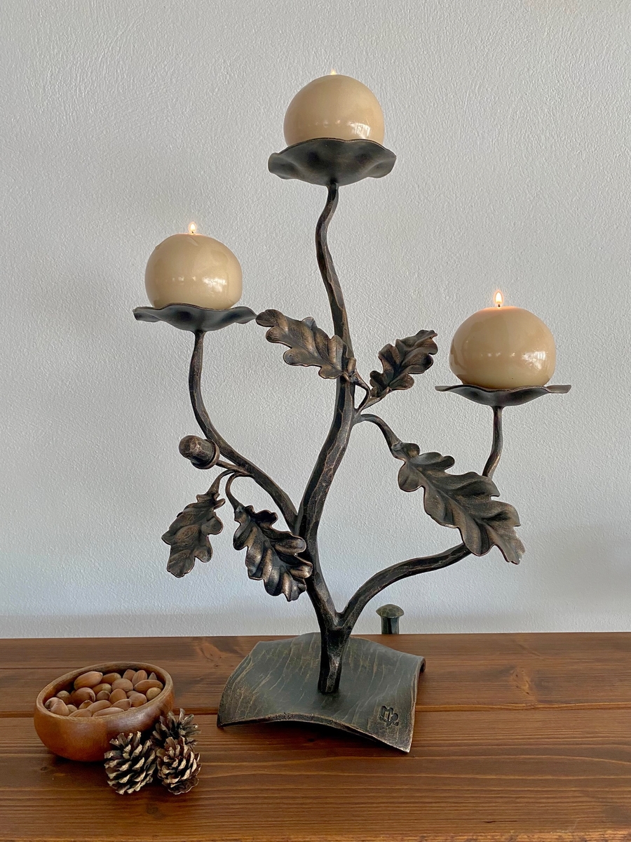Dekorativer Kerzenhalter Eiche symbolisiert Stärke und Stabilität – geschmiedeter Kerzenhalter