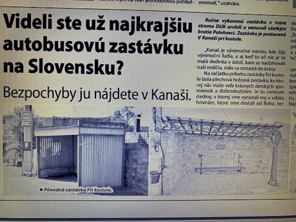 Ručne vykovanú zastávku v tvare stromu DUB urobili a venovali všetkým bratia Polohovci. Zastávka je postavená v Kanaši pri kostole.