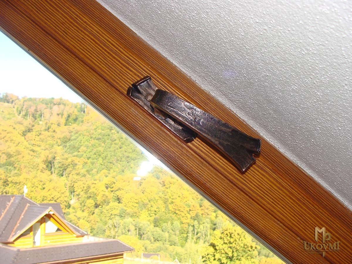 Poignée en fer forgé à la main sur la porte d'entrée avec le logo UKOVMI