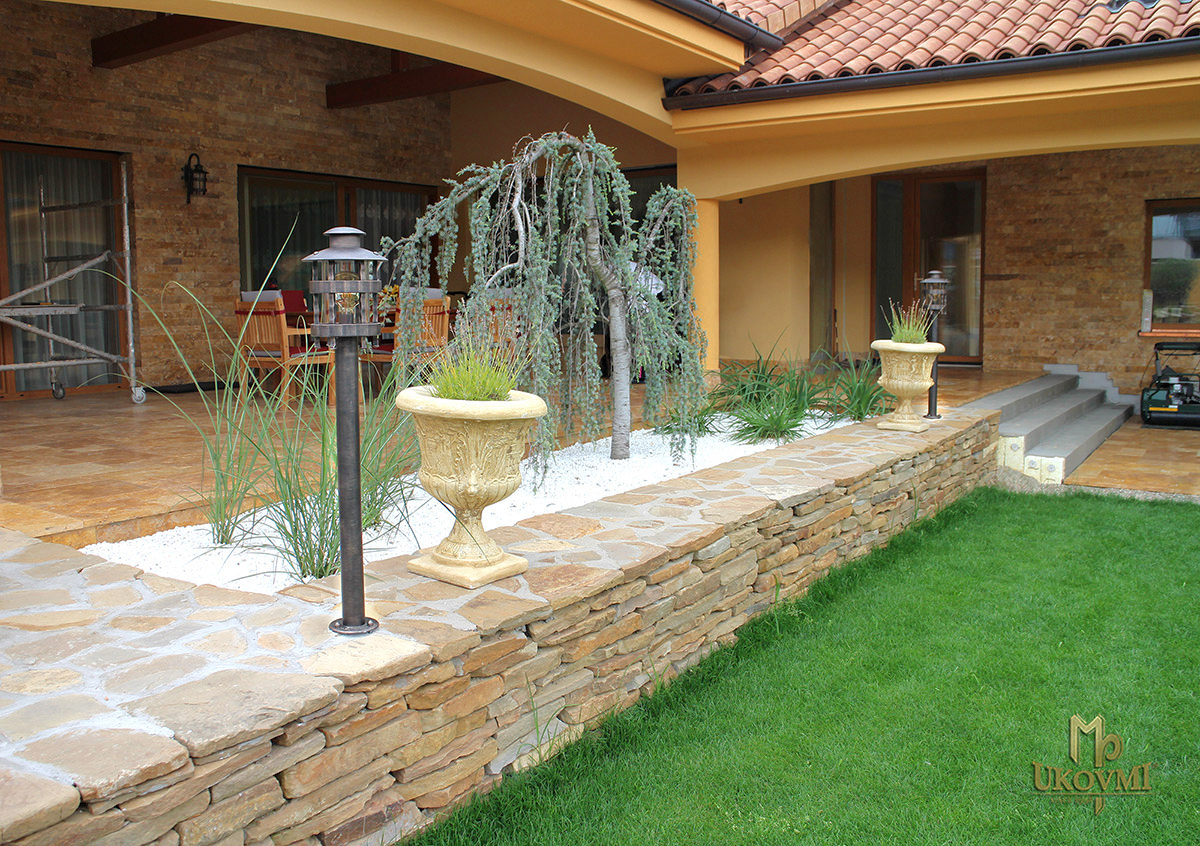 Luxusné osvetlenie terasy a skalky svietidlami vykovanými v ateliéri umenia a dizajnu UKOVMI